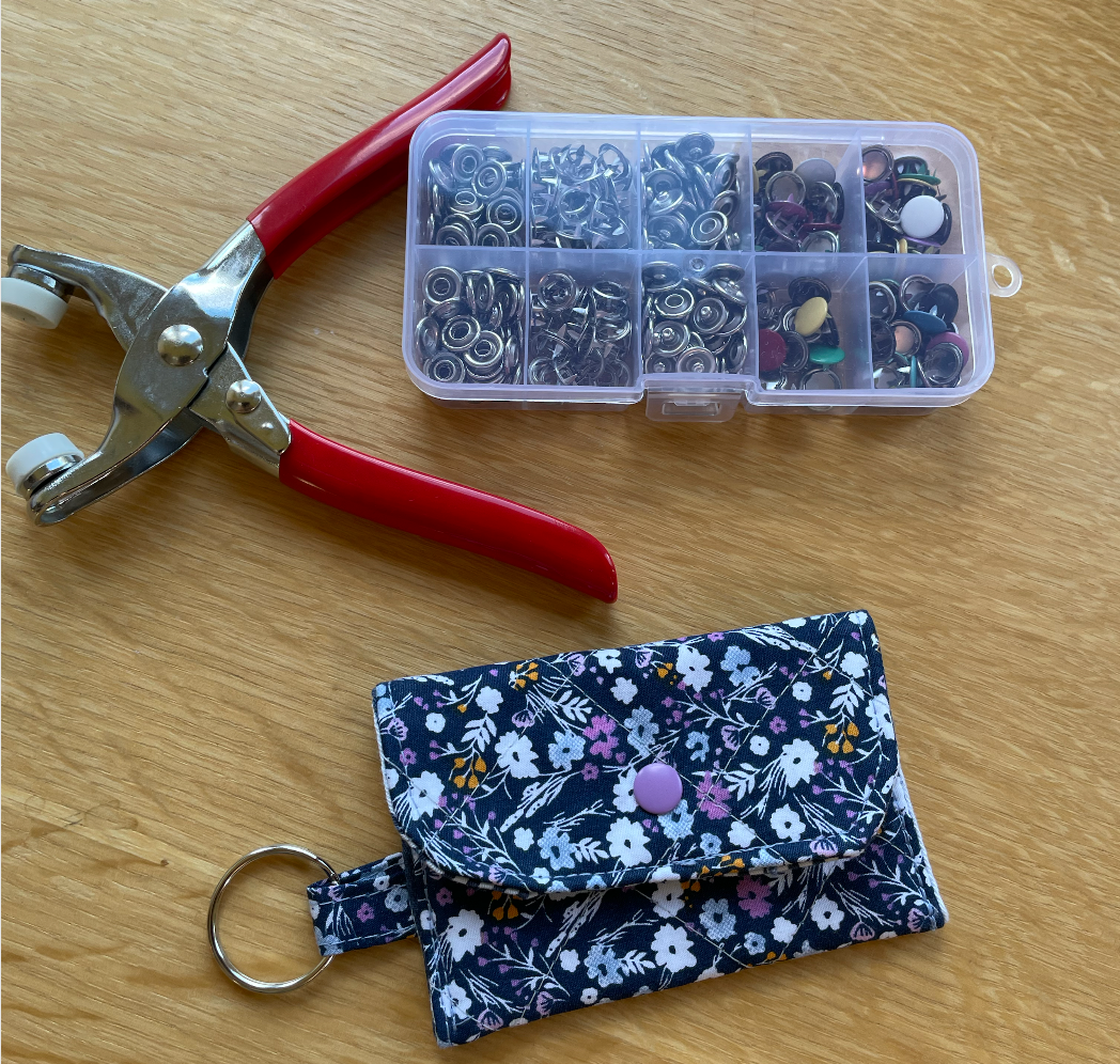 You will learn how to cut with a sewing pattern, use a sewing machine to make the pocket and you will also learn how to use the little snaps (metal).